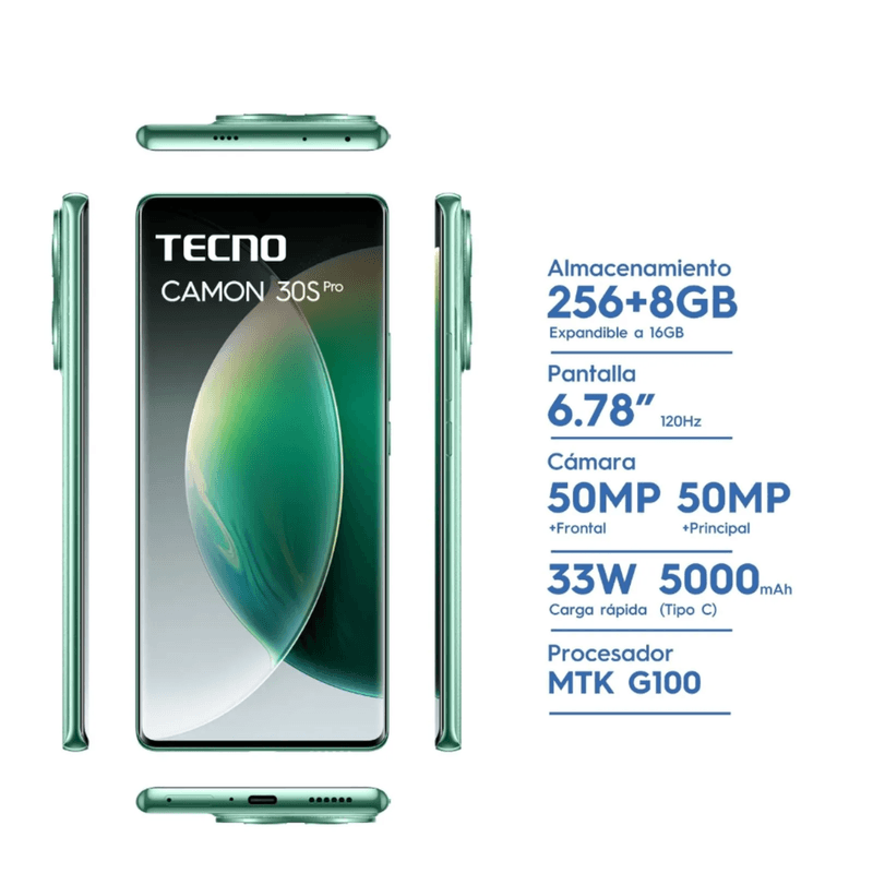 Celular Tecno Spark Camon 30S PRO (256+8GB) Shim Silver Green