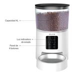 Capacidad de 4 Litros: Depósito amplio para almacenar alimento seco suficiente para varios días, manteniéndolo siempre fresco y crujiente.